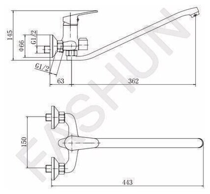 Смеситель на раковину настенный Эверест B46-350 с круглым поворотным изливом, кран-буксы 1/2", хром