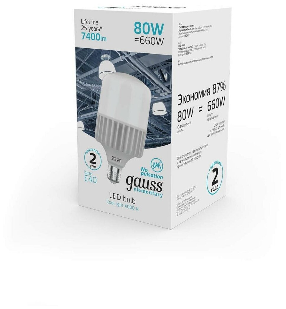 Отзывы на Лампа светодиодная LED 80 Вт 6400 Лм 4000К белая E40 T140 Elementary Gauss () GAUSS 63428 (1 шт.)
