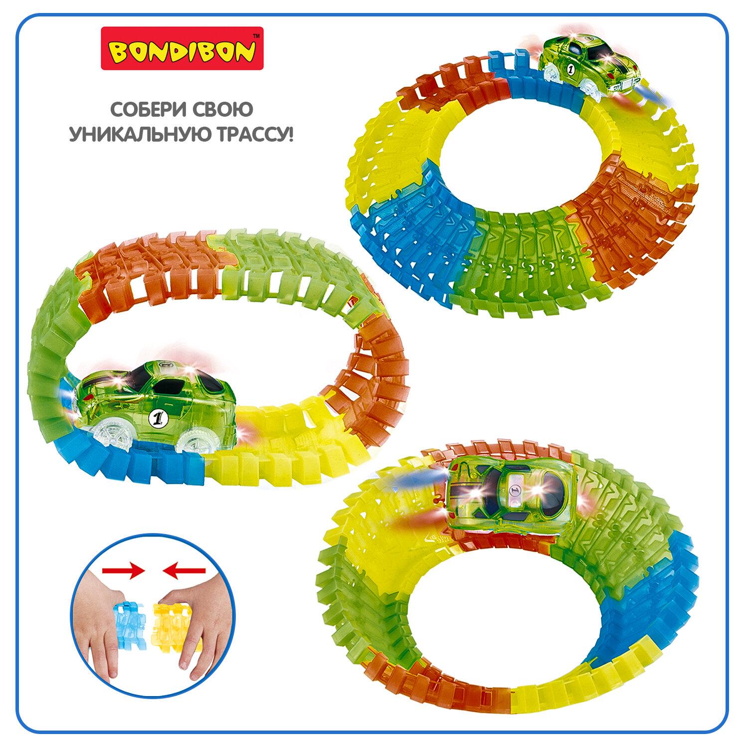 10 цен на Гибкий автотрек Bondibon "ночная трасса", со светящейся трассой и машинкой, 80 дет.,BOX 27x8,5x27 с