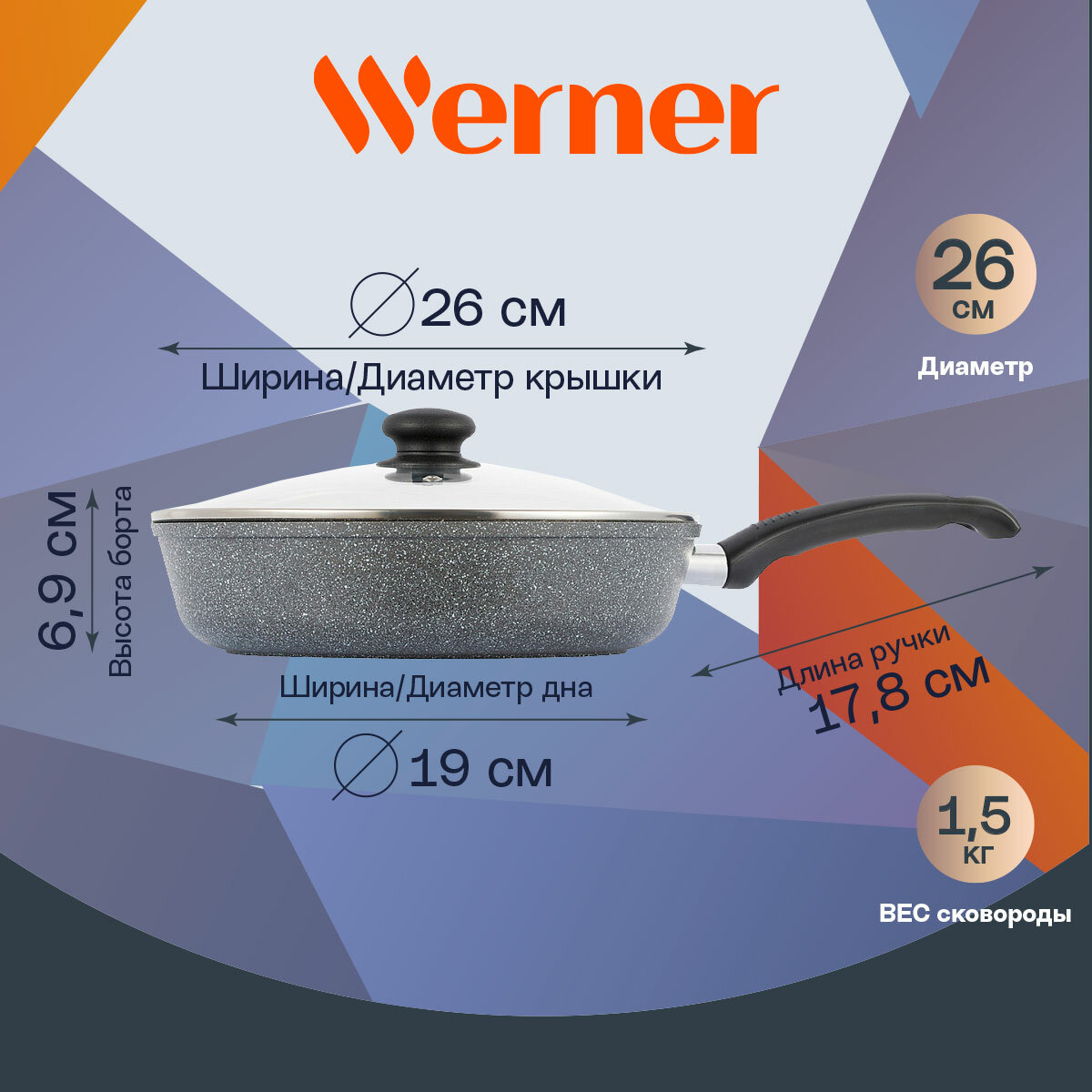 Сковорода Werner LETIZIA 26,0х6,9 см со стеклянной крышкой информация:
