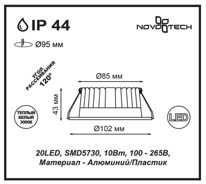 10 цен на Ввстраиваемый светодиодный светильник Novotech 357601 DRUM