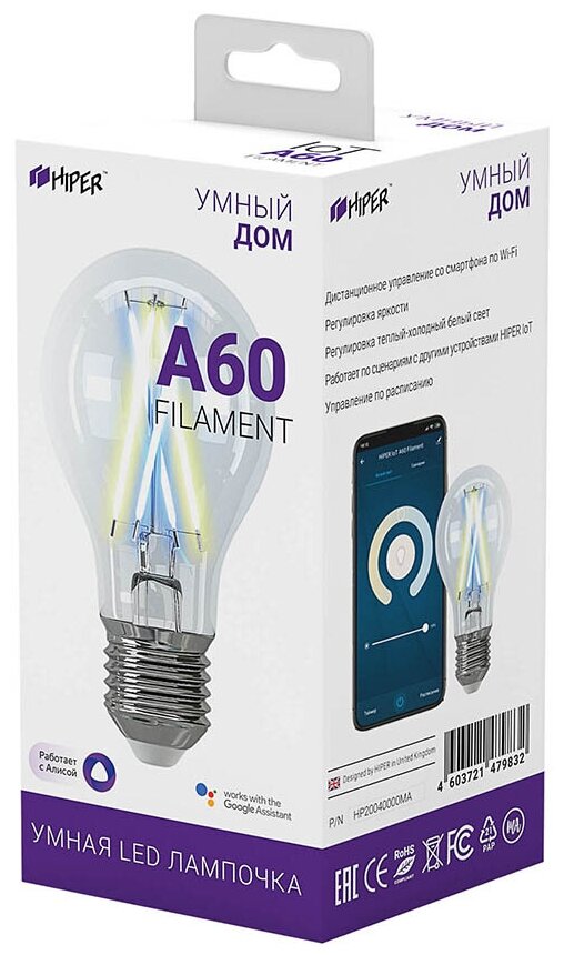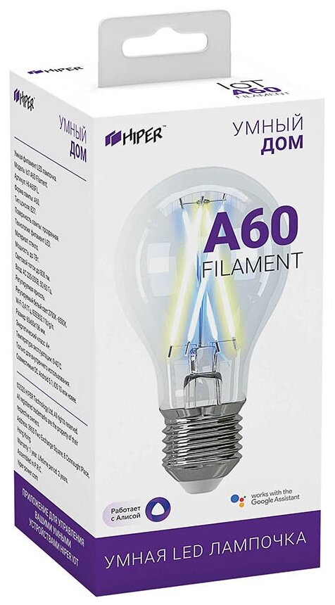 Умная филамент LED лампочка HIPER Smart LED Filament bulb IoT A60 (IoT A60 Filament) информация: