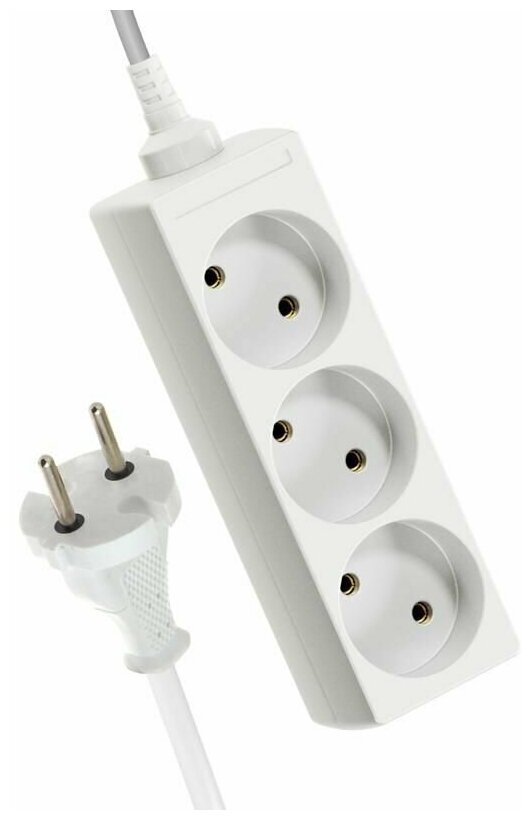 Удлинитель бытовой "Люкс" УЛ3 3 гнезда, 5м, б/з, с з/ш, ПВС 2х0,75 мм2 10А/250В бело-серый TDM