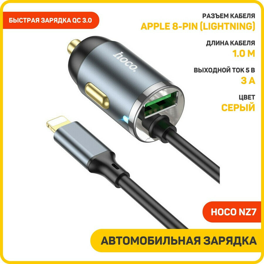 Автомобильное зарядное устройство (АЗУ) Hoco NZ7 QC 3.0 (USB) + кабель Lightning, 3 А, серый 950 ₽