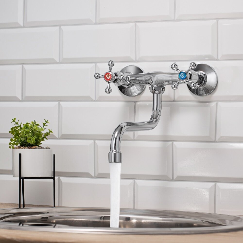 Смеситель для кухни, РМС SL71-361, настенный, поворотный излив, двухвентильный 2 240 ₽