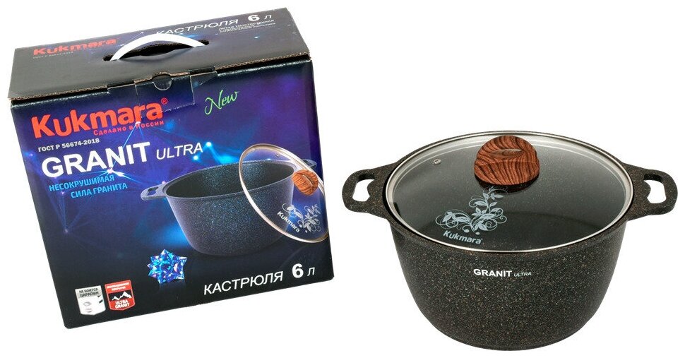 Кастрюля 6л Kukmara Кукмара стеклянная крышка антипригарное покрытие Granit ultra - кго62а информация: