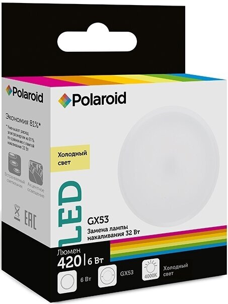 Лампочка Polaroid GX 6W 220V 4000K GX53 420lm PL-GX5364 информация: