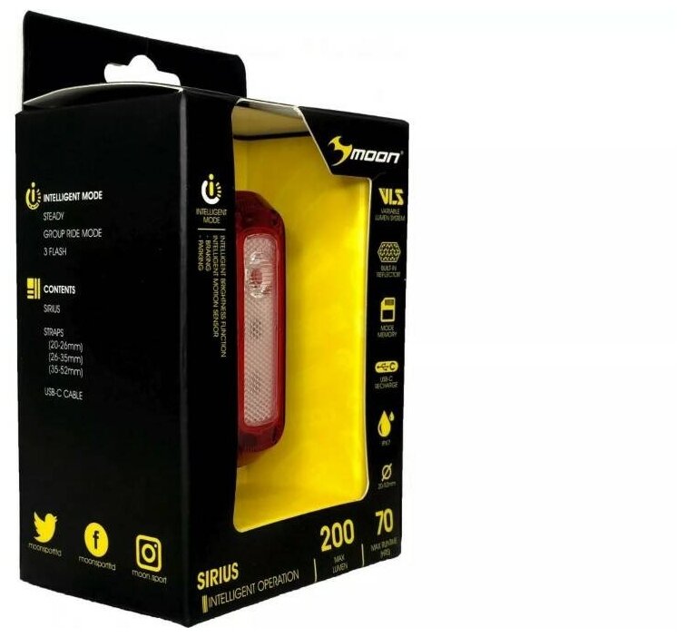 Фонарь задний Moon Helix Sense 300 люмен, функ. тормоза, 6 режимов, USB-C