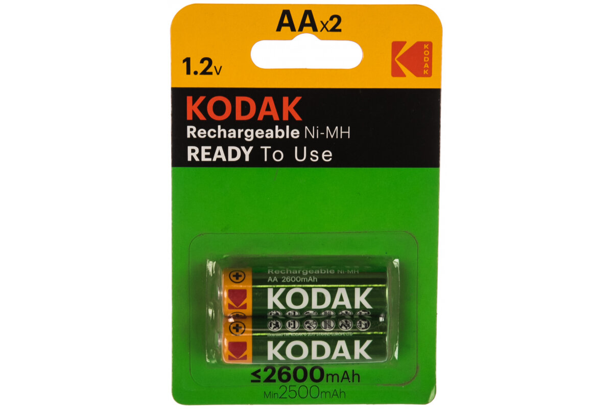 10 цен на Аккумулятор AA Kodak, HR06-2BL, Rechargeable, 2600mAh, предзаряженные, (2/40/320), 2шт