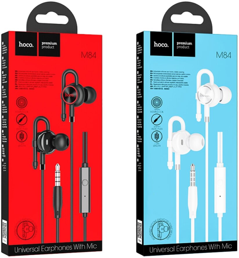 Наушники Hoco M84, проводные, вакуумные, микрофон, 1.2 м, чёрные