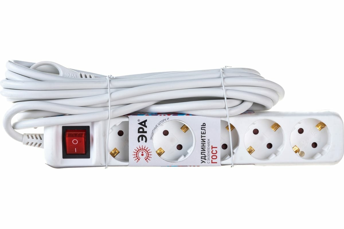 Отзывы на Удлинитель электрический U-5es-5m-3x1.5 с заземлением с выключателем 5 розеток 5м ПВС 3х1.5кв.мм 16А Эра Б0044045