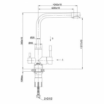 Смеситель для кухни с подключением к фильтру с питьевой водой из нержавеющей стали SUS304 Calorie CAL50116-3
