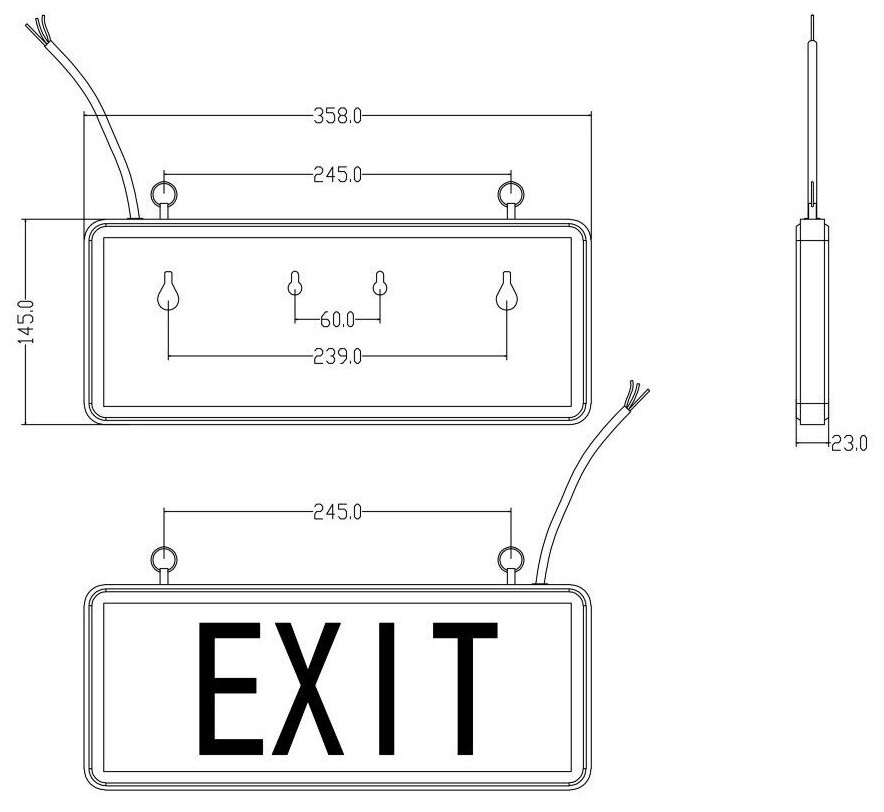 Аварийный светильник световой указатель MBD-089BG Е-07 выход, двухсторонний 220V 10LED 3W, автономный режим 90 мин, подвесной 360x225x43мм