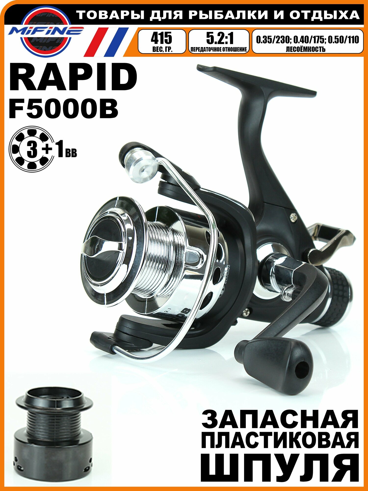 Отзывы на Рыболовная катушка RAPID BLACK 5000B/с байтраннером /3+1 подшипник/катушка фидерная/карповая/для троллинга