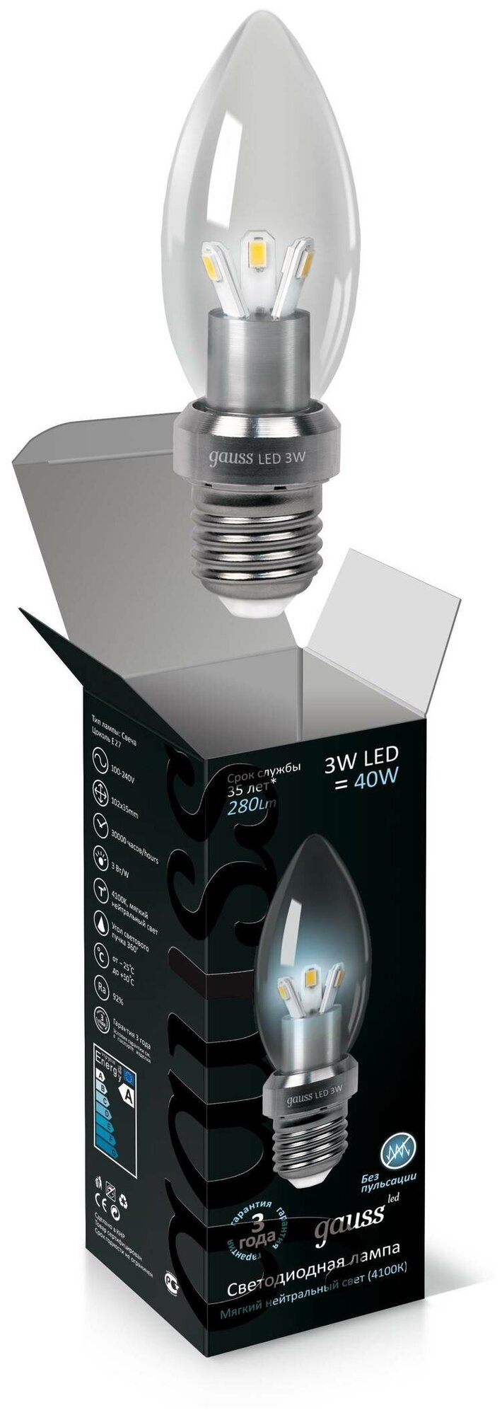 Отзывы на Gauss Лампа LED Filament Свеча tailed E14 5W 4100 K арт. HA103202203