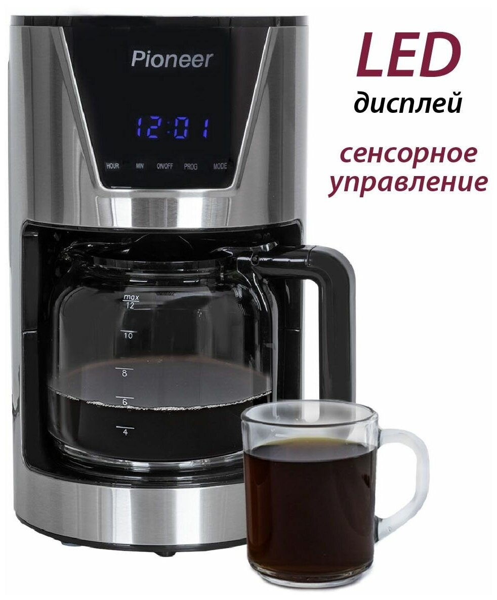 Кофеварка капельная профессиональная Pioneer со стеклянным кофейником до 12 чашек, 3 уровня крепости кофе, многоразовый фильтр