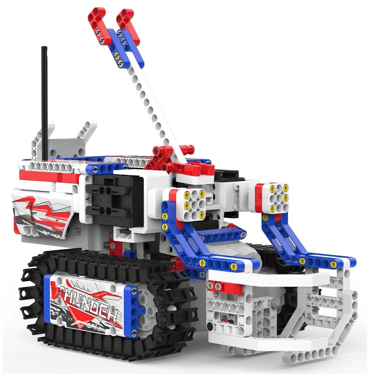| Комплектация | 500+ деталей для сборки и соединителей, 3 серво-мотор плавного перемещения, 2 скоростных мотора постоянного тока, 1 ультразвуковой датчик, 3 мяча, 6 карточек с целями,, 1 блок управления |