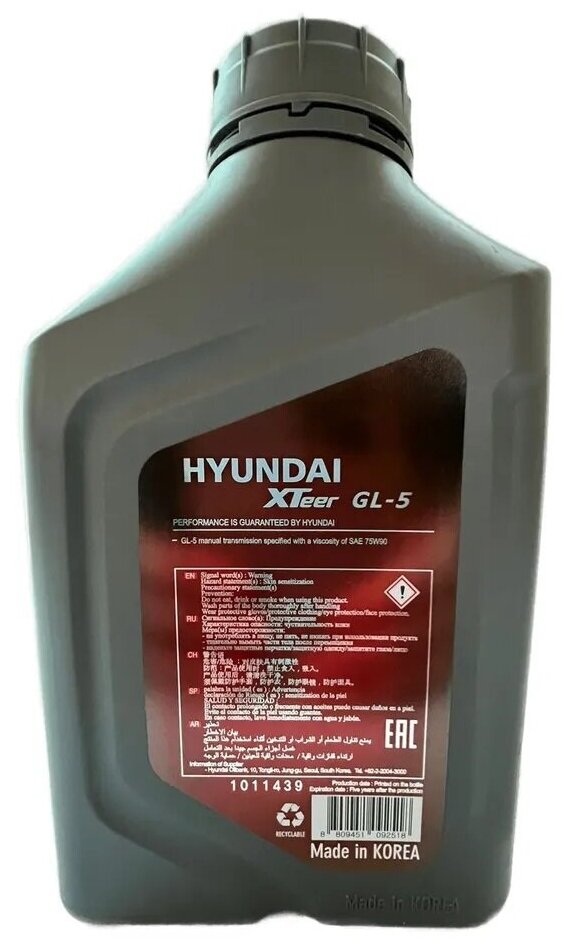 Трансмиссионное масло HYUNDAI XTeer Gear Oil-5 75W90, 1 л информация: