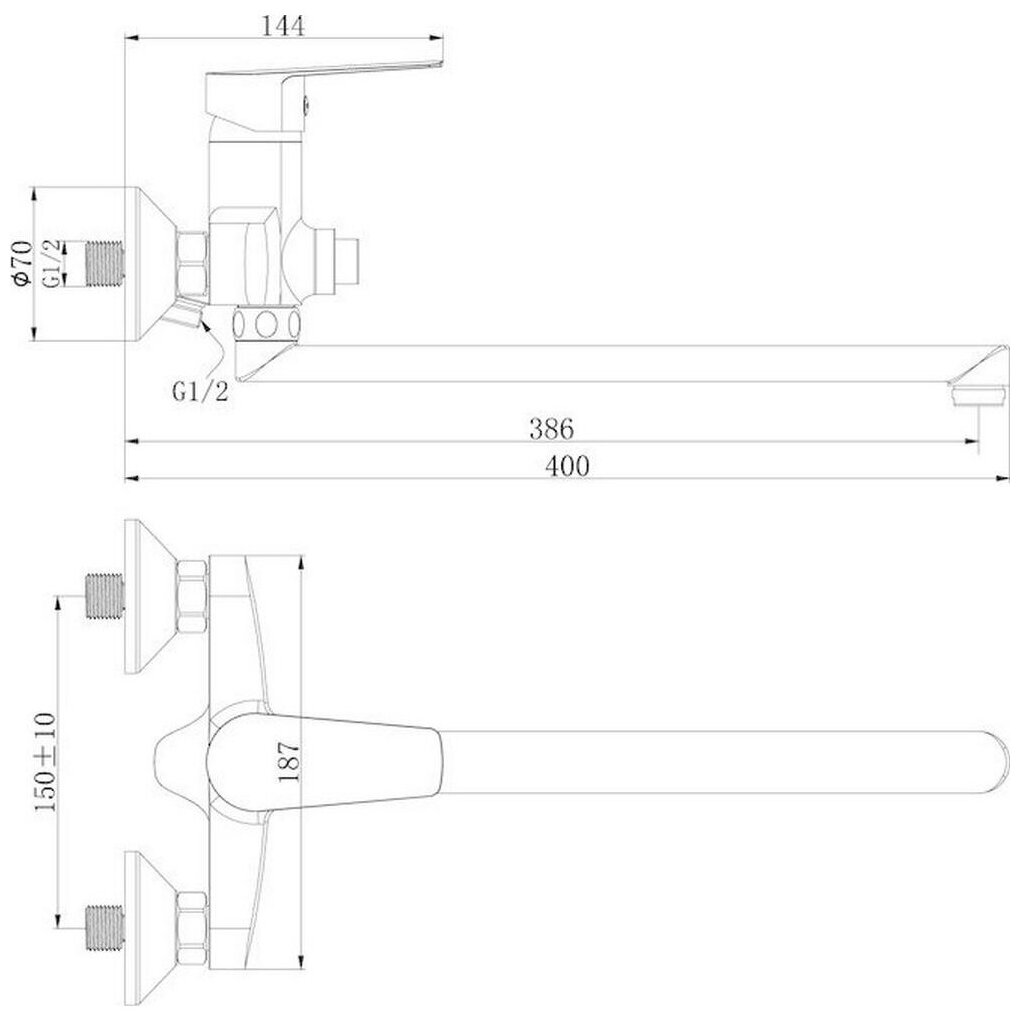 | Длина излива | 386 мм |