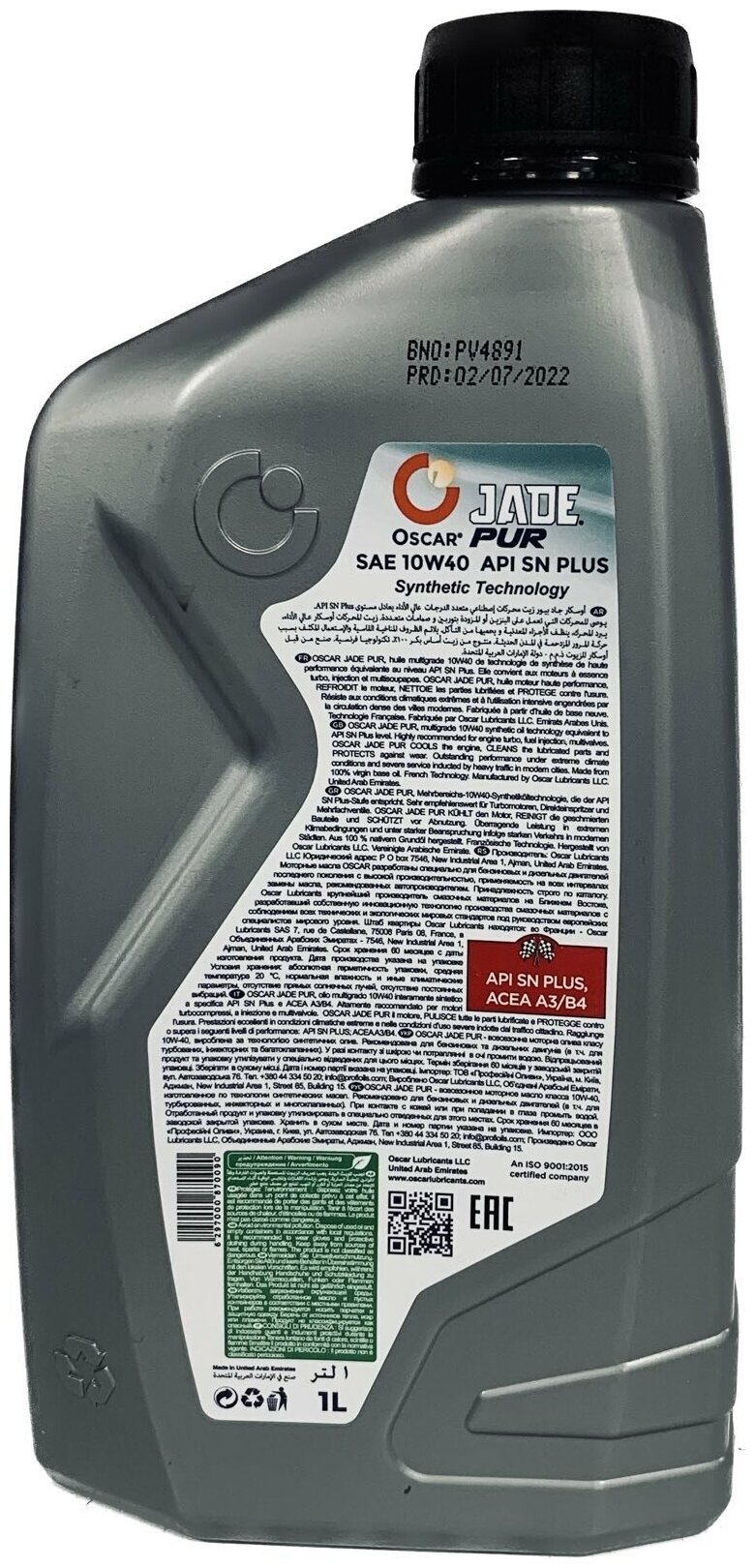 Моторное масло Oscar Jade Pur 10W40 SN Plus/CF,A3/B4 1л син информация: