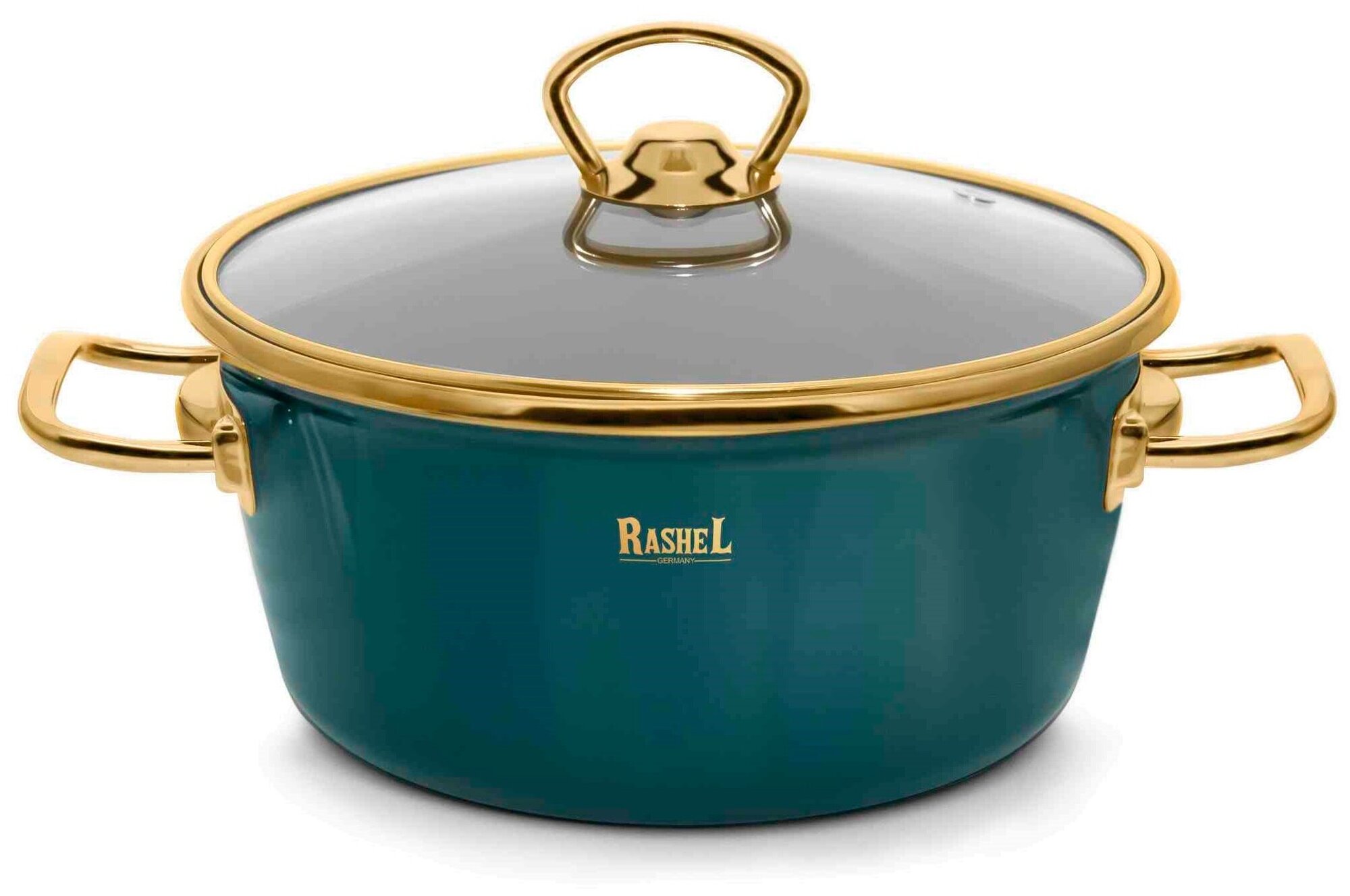 Отзывы на Кастрюля эмалированная Rashel с крышкой и элементами "под золото", 2,1 л/d 18см, цв. изумрудный