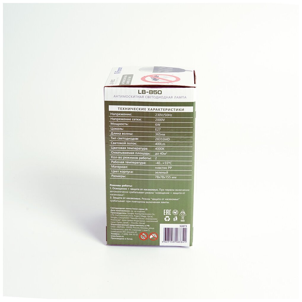 Лампа антимоскитная, цоколь Е27 Feron LB-850 информация:
