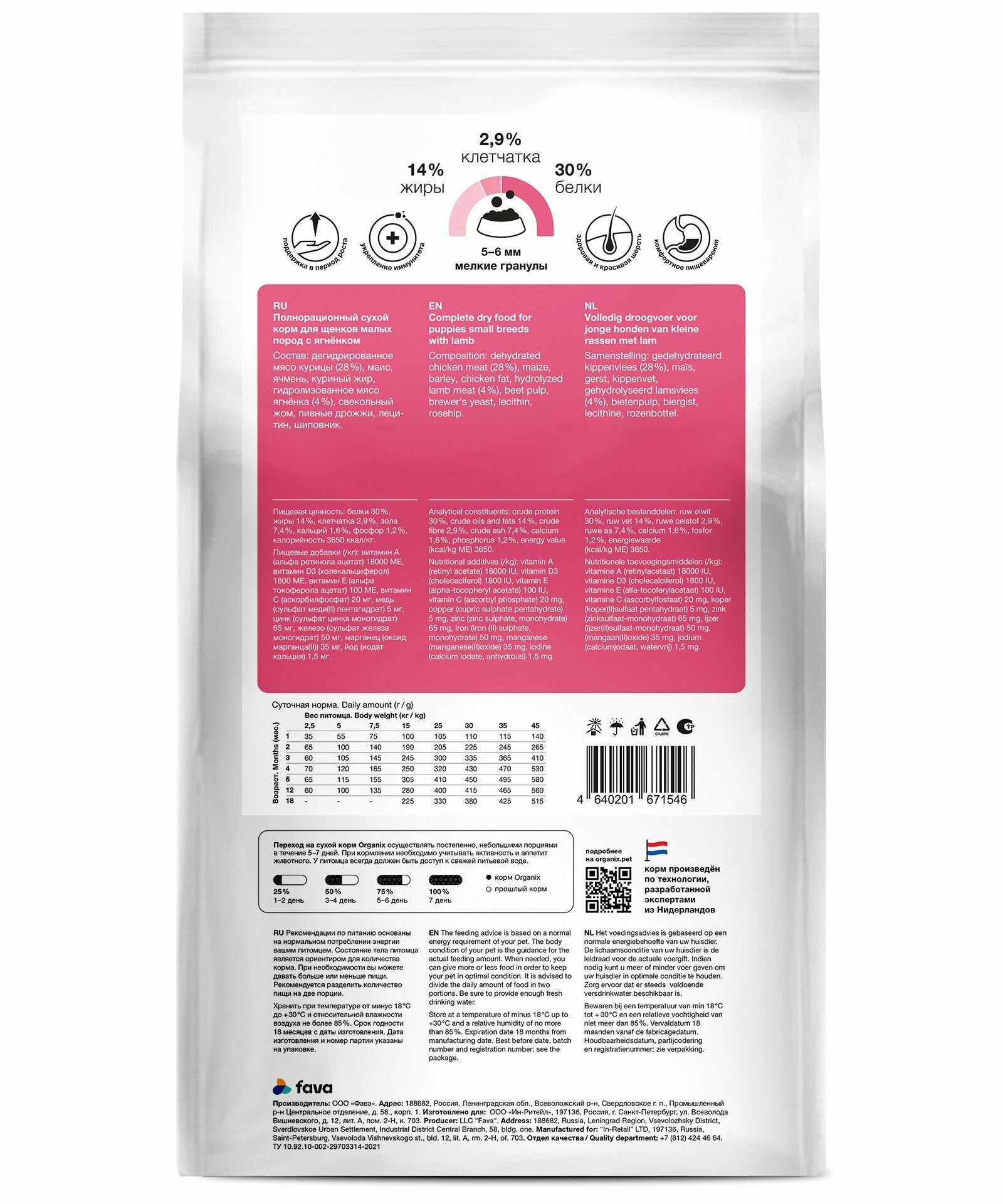 Корм Organix Puppy Small Breeds Lamb для щенков малых пород, с ягненком, 800 г