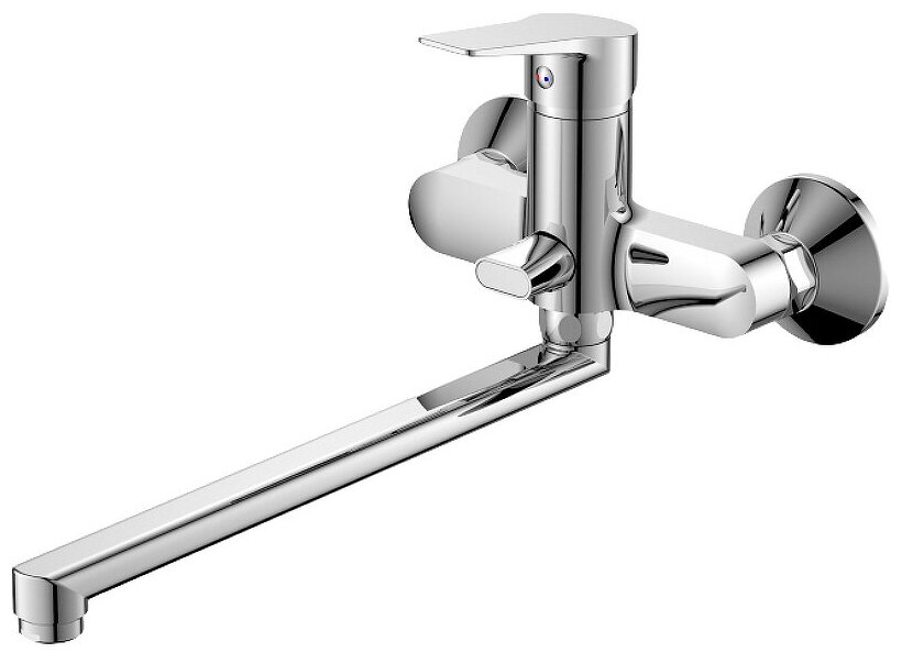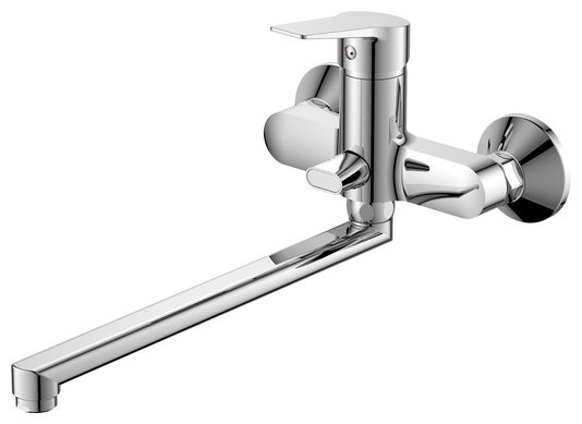 Смеситель на раковину настенный Эверест B46-350 с круглым поворотным изливом, кран-буксы 1/2", хром