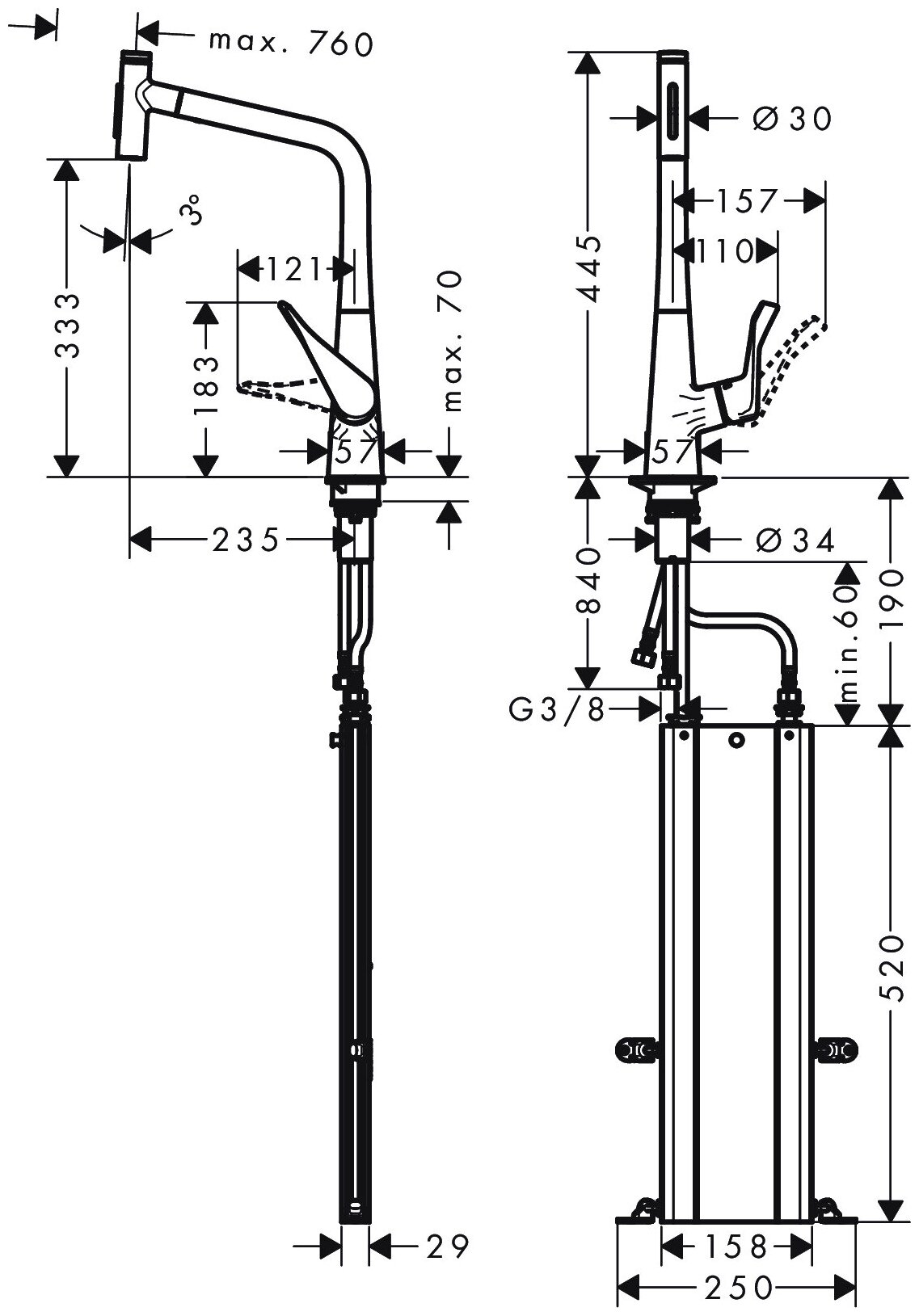 Смеситель для кухни 333 мм, выдвижной излив, кноп. Select, MagFit, sBox Hansgrohe M7115-H320 73816000 информация: