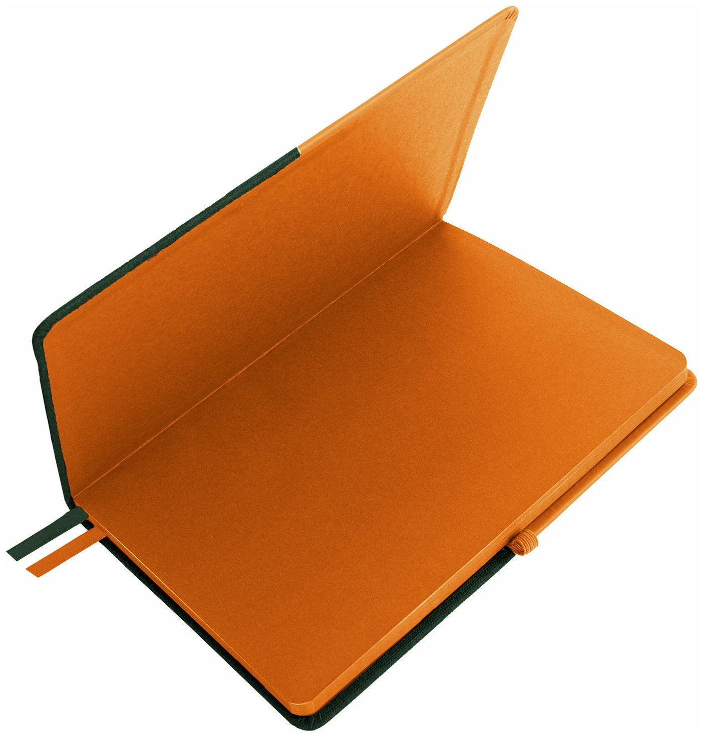 Бизнес-блокнот / записная книжка мужской / женский А5 (148х218 мм), Brauberg Duo под кожу с резинкой, 80 листов, клетка, оранжевый/зеленый информация:
