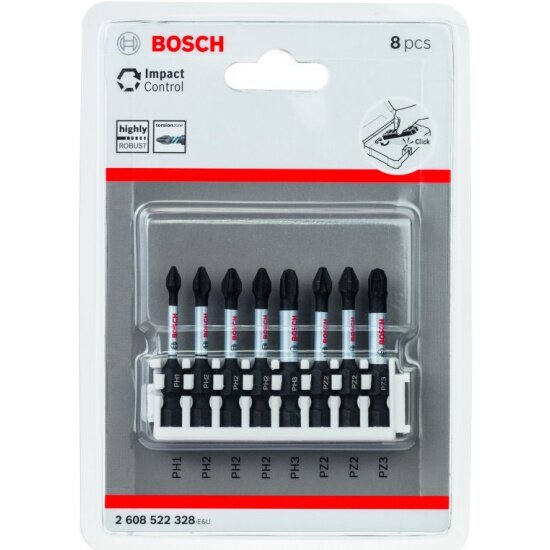 Набор бит BOSCH ударных Impact Control 50 мм PH1, PH2 (3шт), PH3, PZ2 (2шт), PZ3 информация: