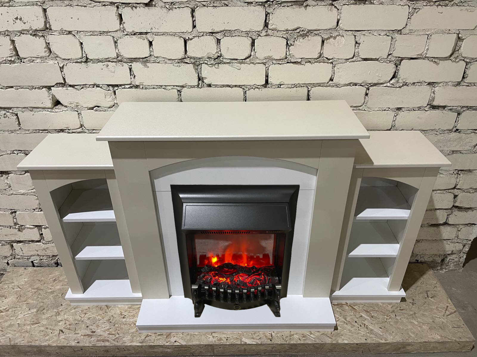 Электрокамин FlameKamin Скандинавия LUX BG-WT с очагом Fobos (камин электрический с тумбами и полками)