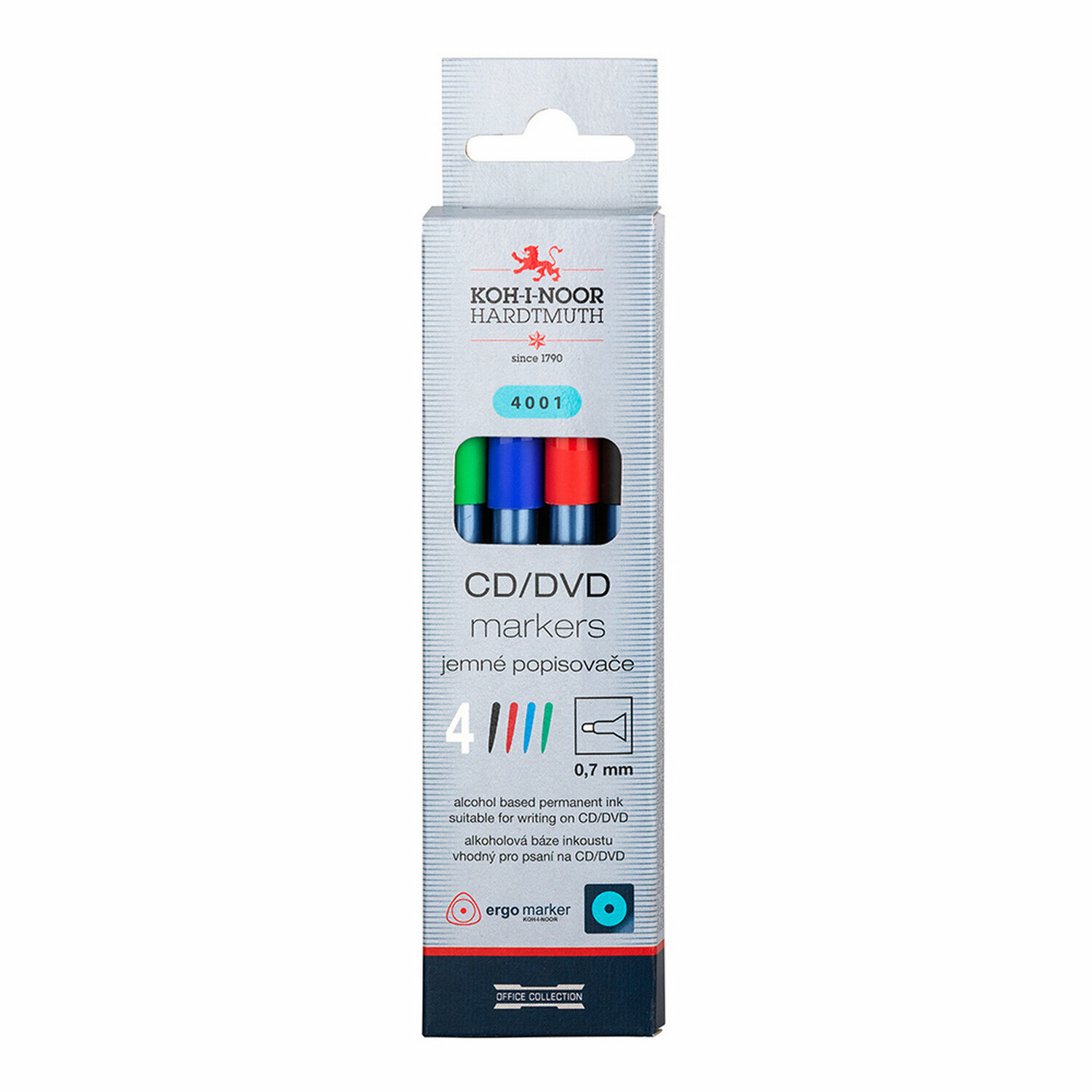 Маркеры для CD и DVD KOH-I-NOOR, набор 4 шт, ассорти, трехгранные, 0,7 мм, 774001JD01PK