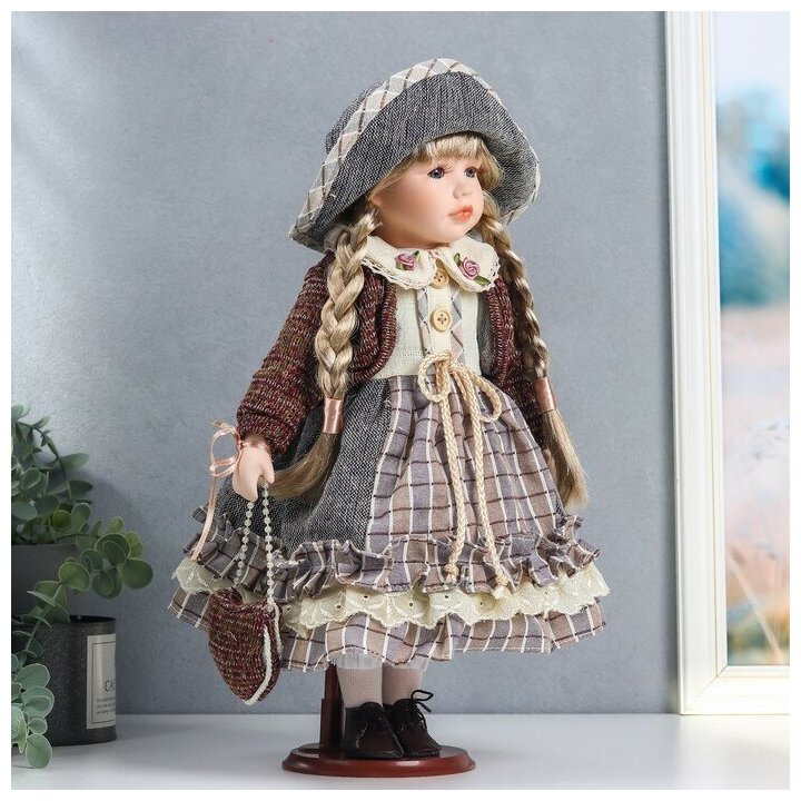 10 цен на Кукла коллекционная керамика "Лаура в сером платье, коричневом джемпере" 40 см (1 шт.)