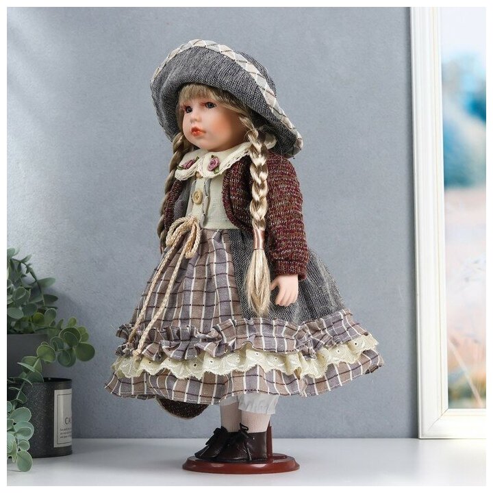 Кукла коллекционная керамика "Лаура в сером платье, коричневом джемпере" 40 см (1 шт.) информация: