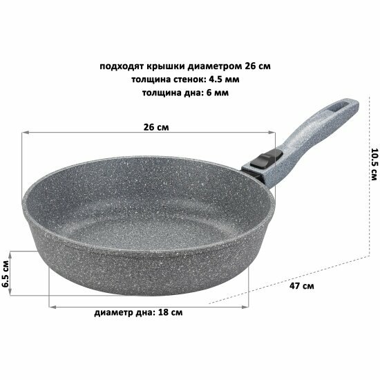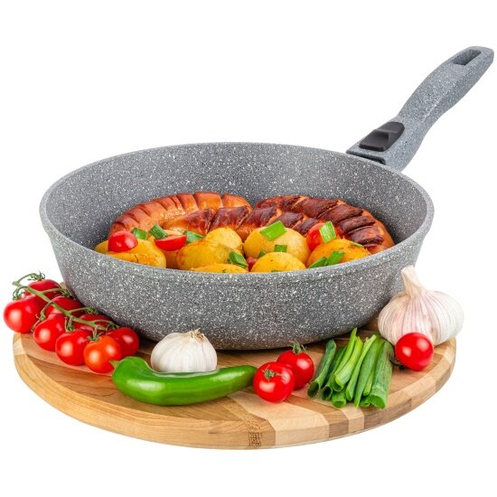 Отзывы на Сковорода глубокая Elan Gallery гармония вкуса Серый мрамор, съёмная ручка, 26 см