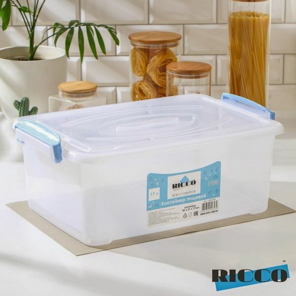 Контейнер пищевой RICCO, 17 л, 46×31×17 см, прямоугольный, цвет прозрачный, голубой (1 шт.) информация: