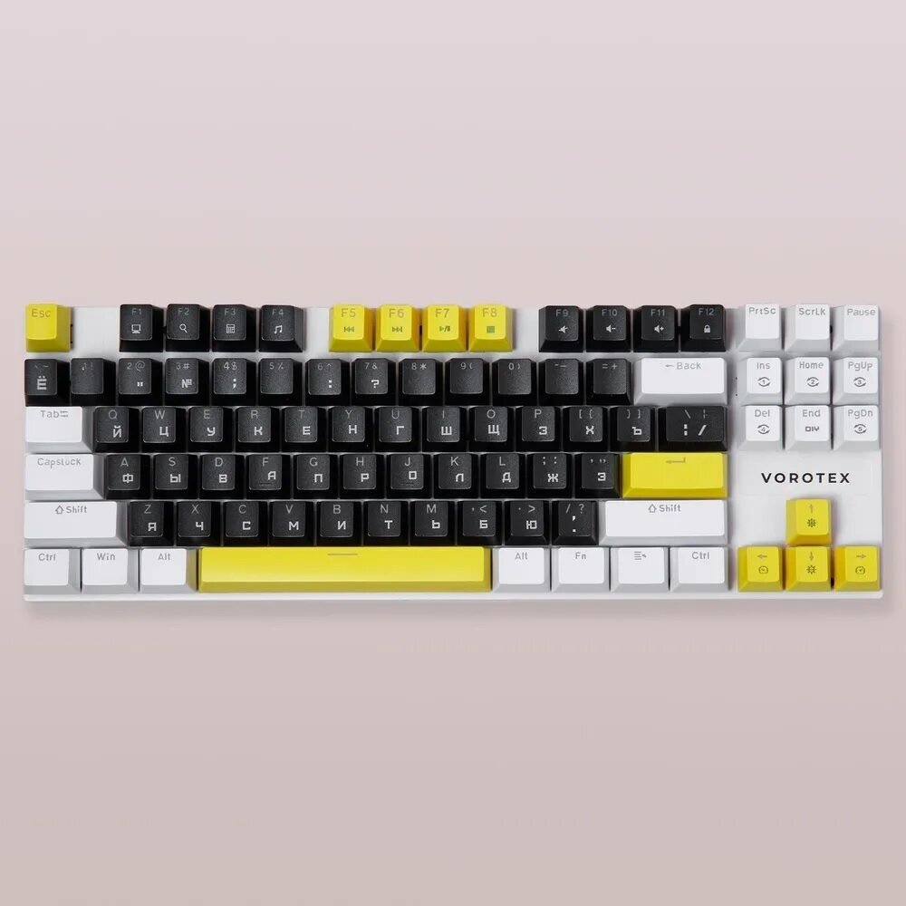 Игровая клавиатура VOROTEX K87S Red Switch, белый/черный/жёлтый, русская