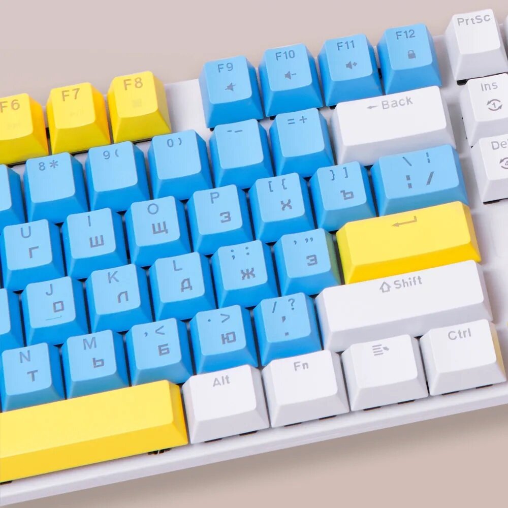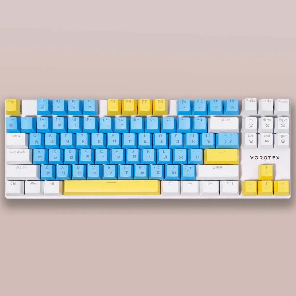 Игровая клавиатура VOROTEX K87S Blue Switch, белый/голубой/желтый, русская