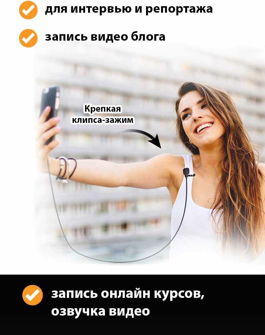 Микрофон петличный беспроводной SJCAM М1 с шумоподавлением, Type-C, Lightning, mini jack 3,5 mm, 2 шт, черный