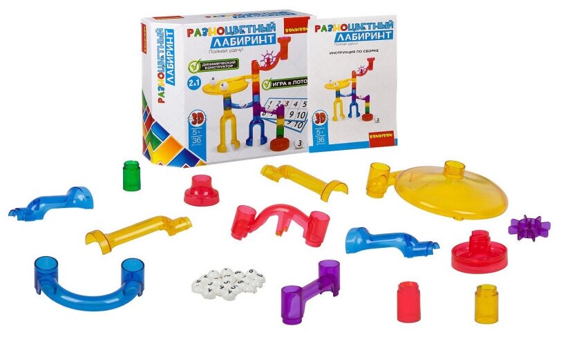Динамический конструктор Bondibon "Разноцветный Лабиринт", 36 деталей, 24*20,5*6,5 см (ВВ2742) информация: