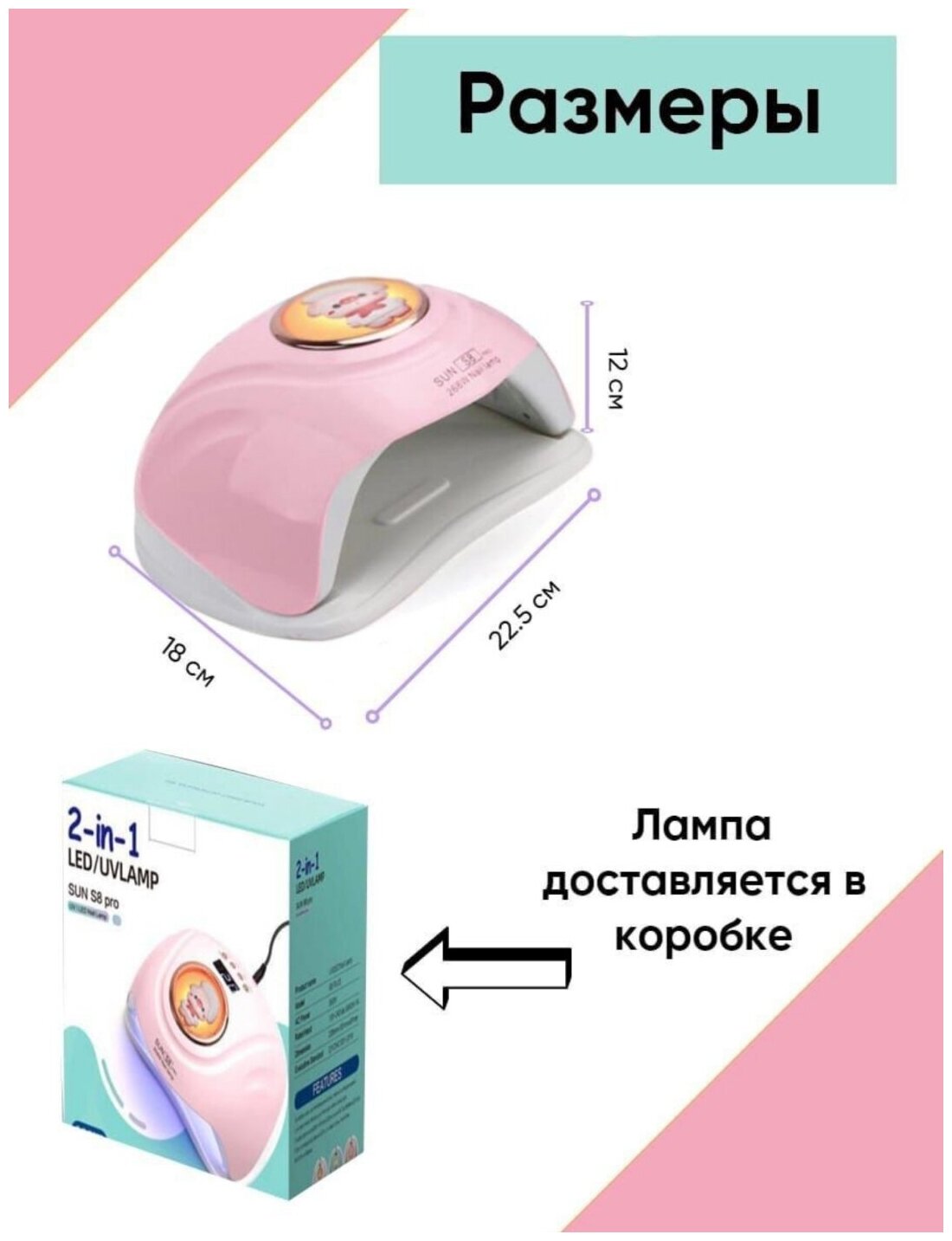 Лампа для маникюра LED UV и педикюра SUN S8 PRO 268W, розовая. информация: