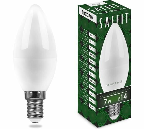 Светодиодная лампа SAFFIT SBC3707 Свеча E14 7W 2700K 55030 информация: