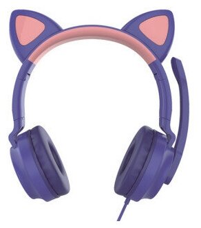 Наушники Qumo Game Cat Purple, игровые, микрофон, USB+3.5 мм, 2м, фиолетовые