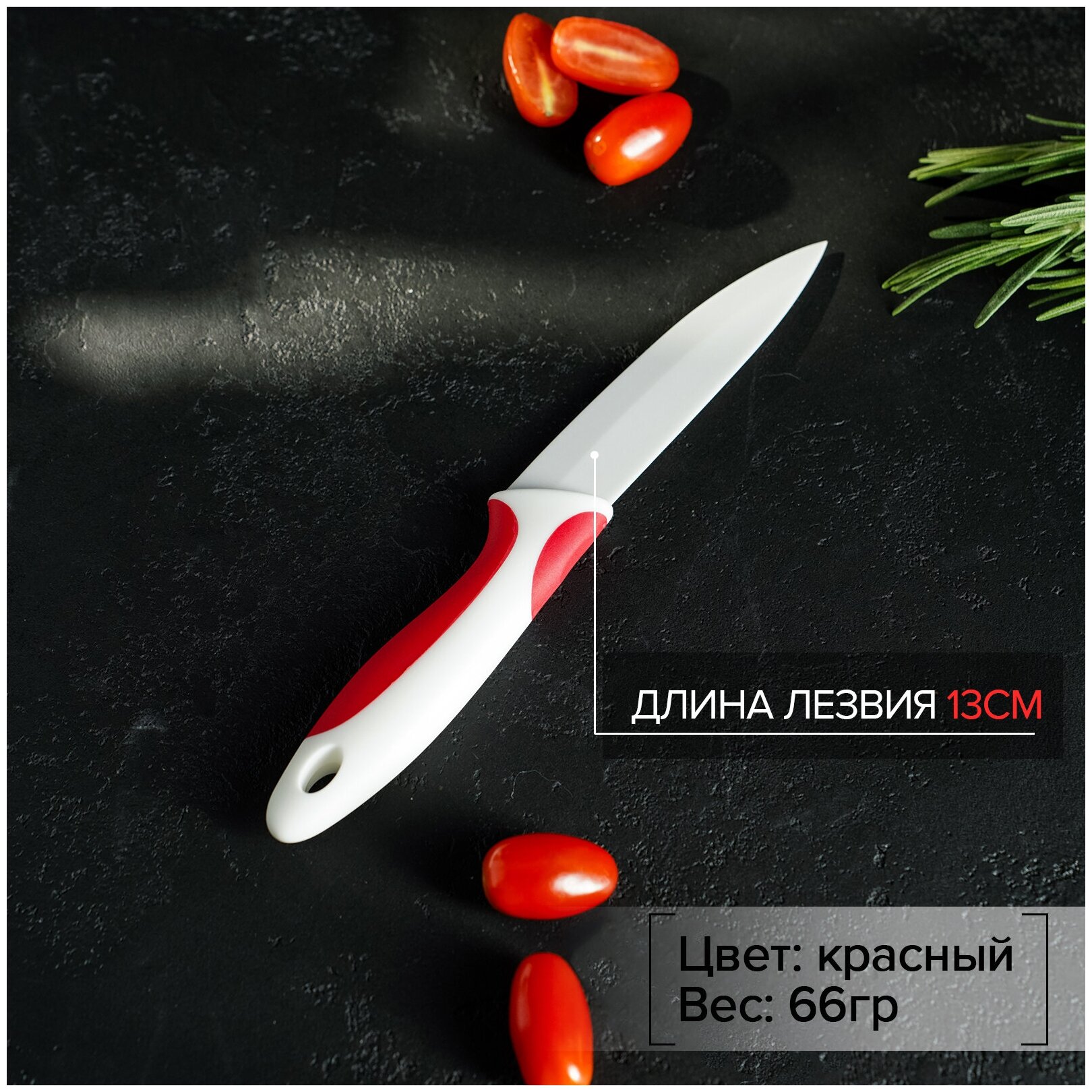 Нож керамический Доляна «Умелец», лезвие 13 см, цвет красный