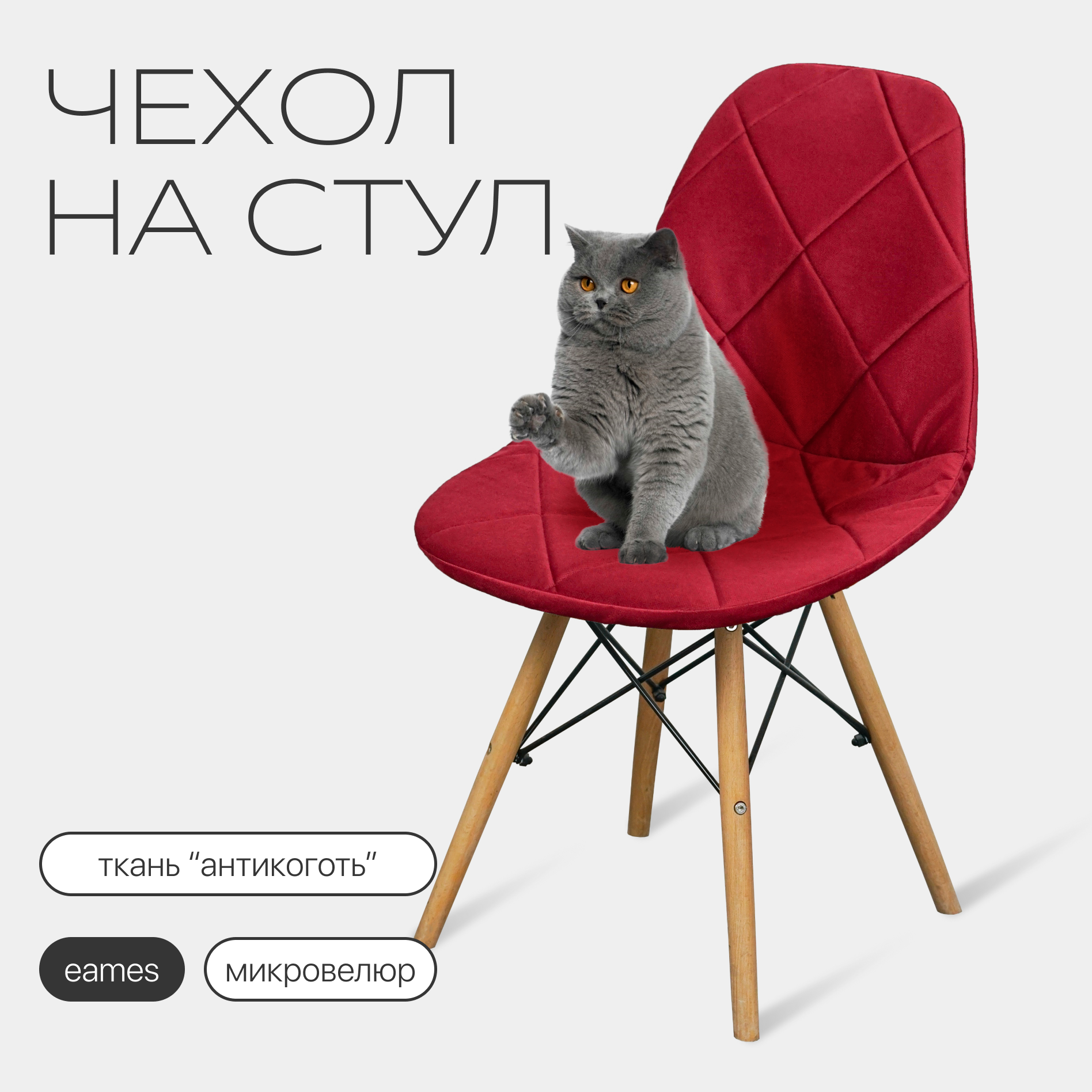 10 цен на Чехол на стул со спинкой Eames DSW из микровелюра, 40х46см, бордовый