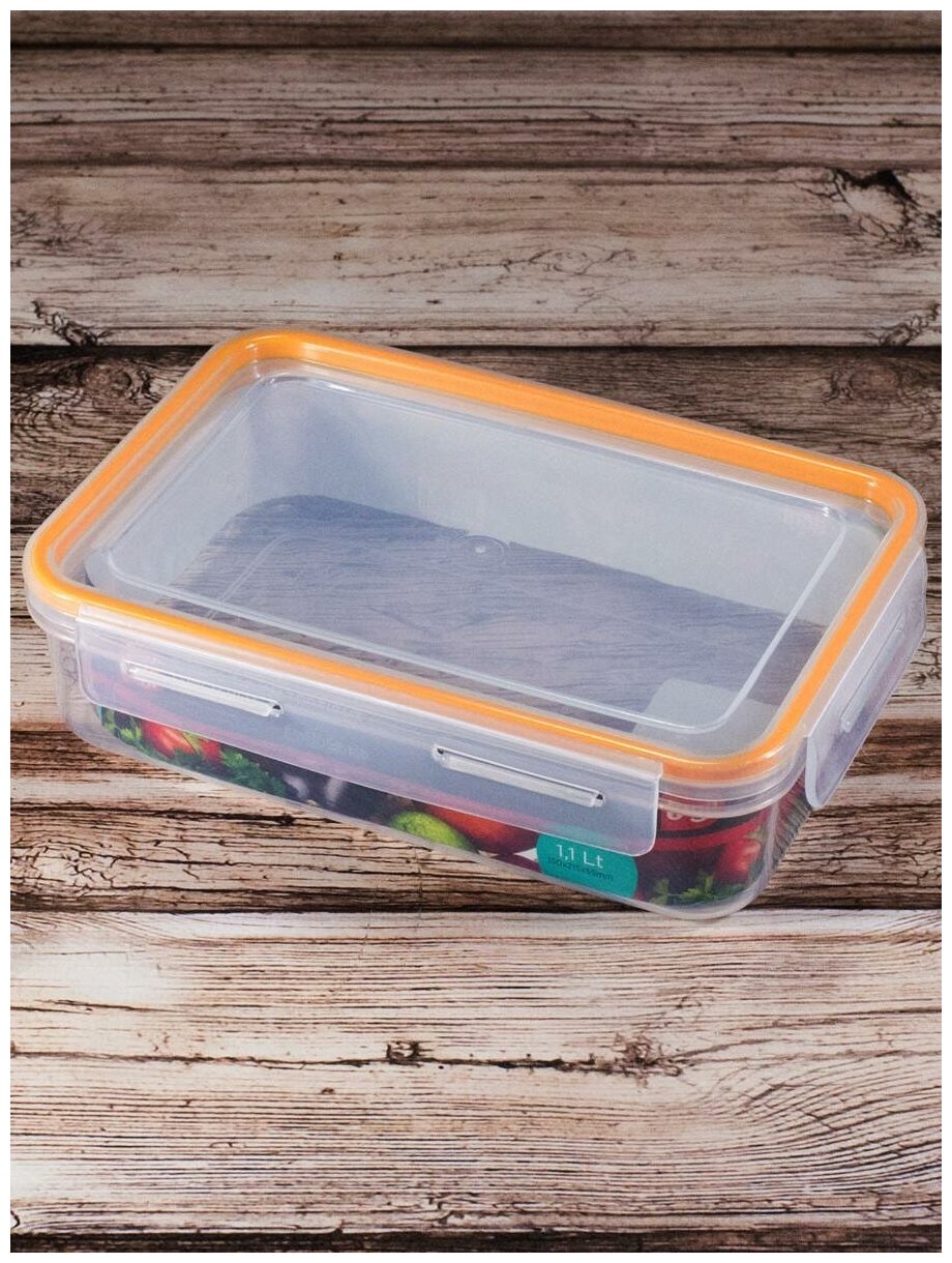 Контейнер герметичный прямоугольный 1.1л ДхШхВ 150х215х55 мм крышка на защелках полоса оранжевая пластик BORA 1 шт информация: