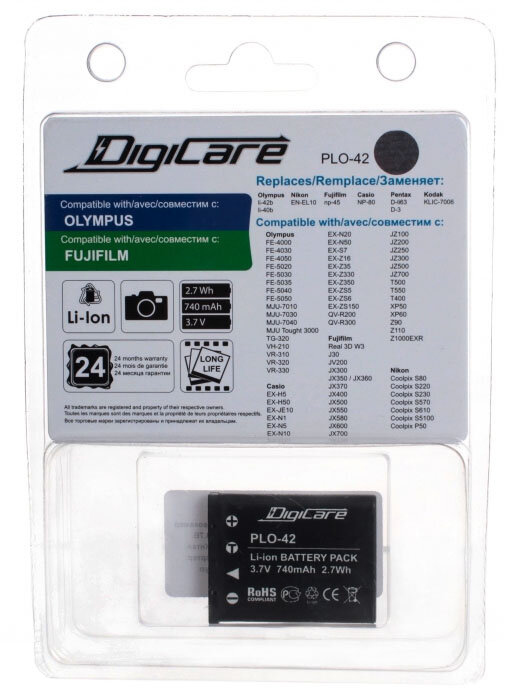 Аккумулятор DigiCare PLO-42 / Olympus LI-42b, LI-40b, Nikon En-el10, Casio Np-80, Fuji NP-45 PLO-42 .