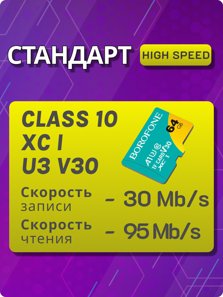 Micro SDXC карта памяти Borofone 64GB Class 10 (без адаптера) информация: