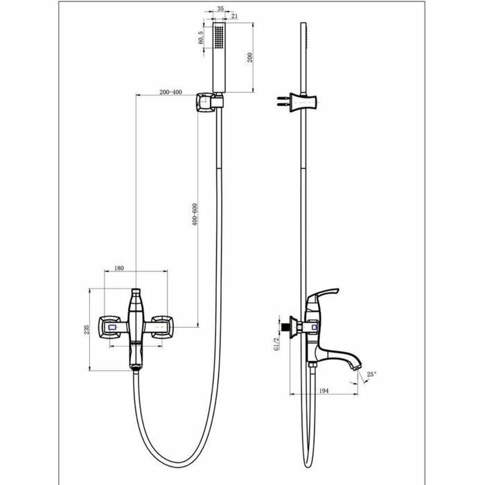 Смеситель для ванны Orange ALFI двухвентильный с душевым набором, глянцевый хром